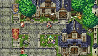 Each town and village is packed with the kind elaborate detail that borders on unnecessary, such as ticking clocks and birds flying overhead, and I know this doesn't sound overly impressive in 2013 but to me it's an indication of just how much the developers cared about the overall look and feel of the game. Though never mind blowing, the world map is also pretty and is somewhat reminiscent of Chrono Trigger, with the usual sprawling mountain ranges and and rolling hills. The characters, both lead and NPCs are well designed and each main star comes with their own beautifully styled portrait that pops up for conversations (again, very Suikoden). This adds a deal of personality to each scene...more indication of effort on Sonnori's part.